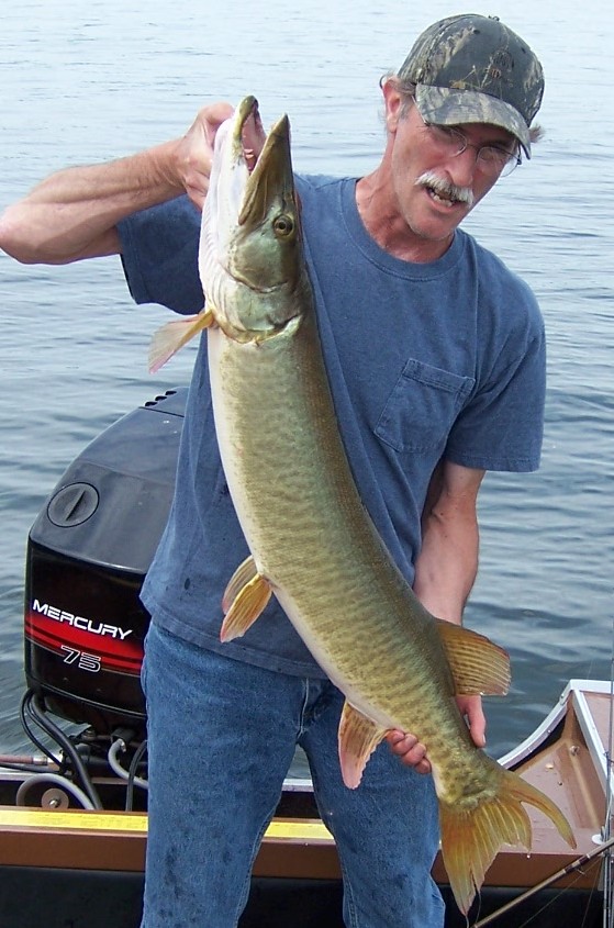 | Haven't been fishing in awhile, but just got a picture from my aunt, my uncle went fishing in Canada and caught a 55 1/2 inch musky. Frickin' huge! | ||