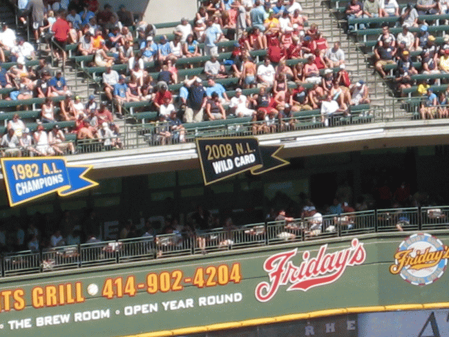 | At least Sarah and I, and probably/possibly Matt and Jon will be going to Miller Park for the Twins/Brewers Games on the 24th and 25th. Does anyone else want in? There appears to be 500 sections you can request tickets for, anyone have any tips/preferences? We will then be heading down to St. Louis for the series there, so anyone that comes would have to get their on their own, as there would be no return trip. | ||