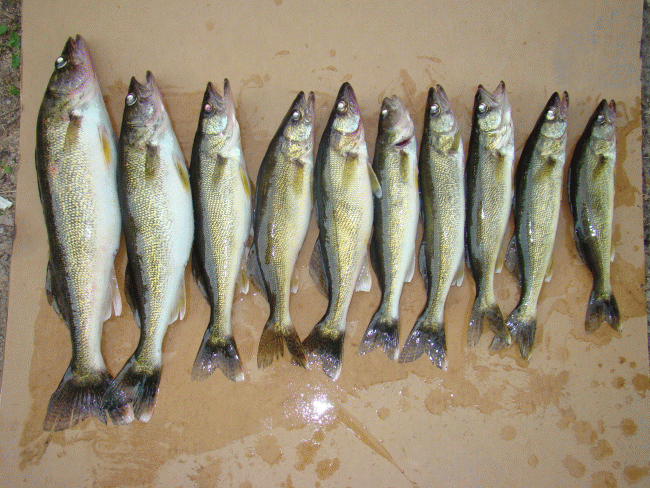 Slacker. Fished something like 4-9 on Winnebago on Saturday evening with my parents and brother and kept 3 walleye and a perch. Fished 8-4 today with my dad and limited out on walleye. Had 2 in the first 1.5 hours, it got kind of wavy so went in closer to shore and killed a few hours not catching much, then some clouds rolled in and the wind died a little bit so we went out farther again and probably caught the last 8 and some smaller ones in 1 or 2 hours. Yellow/orange jigs were hot with most coming on crawlers but it think the 2 biggest were on leeches, one each day on my powerbait grubs. 21", 18, 15.5, 15.5, 15, 14.5, 14, 14, 13.5, 12 The big ones had gobs of fat on them. Next time they're going on the treadmill for a few weeks before being cleaned. |