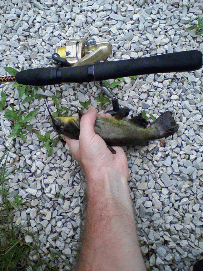 | Fished for an hour, caught a 10" bass, a bullhead, baby bluegills, and crappie. | ||