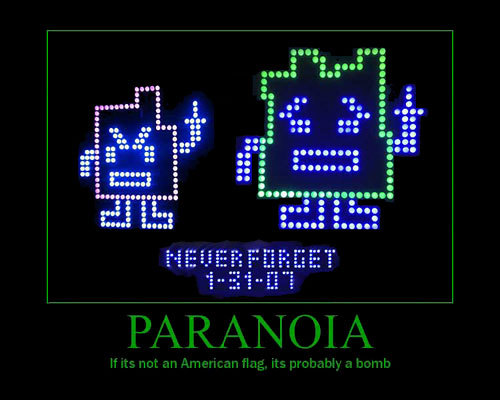 Well, this is a little different then the Aqua Teen Hunger Force, "ZOMG! It's an electronic device!! What is it!?!? Let's assume it's here to kill us and shut the city down!!" reaction. This device was made to look like a bomb and the dip shit was stupid enough to wear it to the airport. It's safe to say she would have been nominated for a Darwin Award had "deadly force" been used. You can get arrested for making a joke about a bomb at an airport, let alone wearing a fake bomb to the one a couple of the 9/11 planes took off from. |