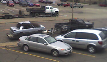 If one were to label this picture how would you do it. I apologize for the low quality, it was off my cell phone and through my office window. It would seem that someone needed to transport a large amount of wire and thought the best way would be to cut the roof halfway off a car and stuff the wire inside it. |